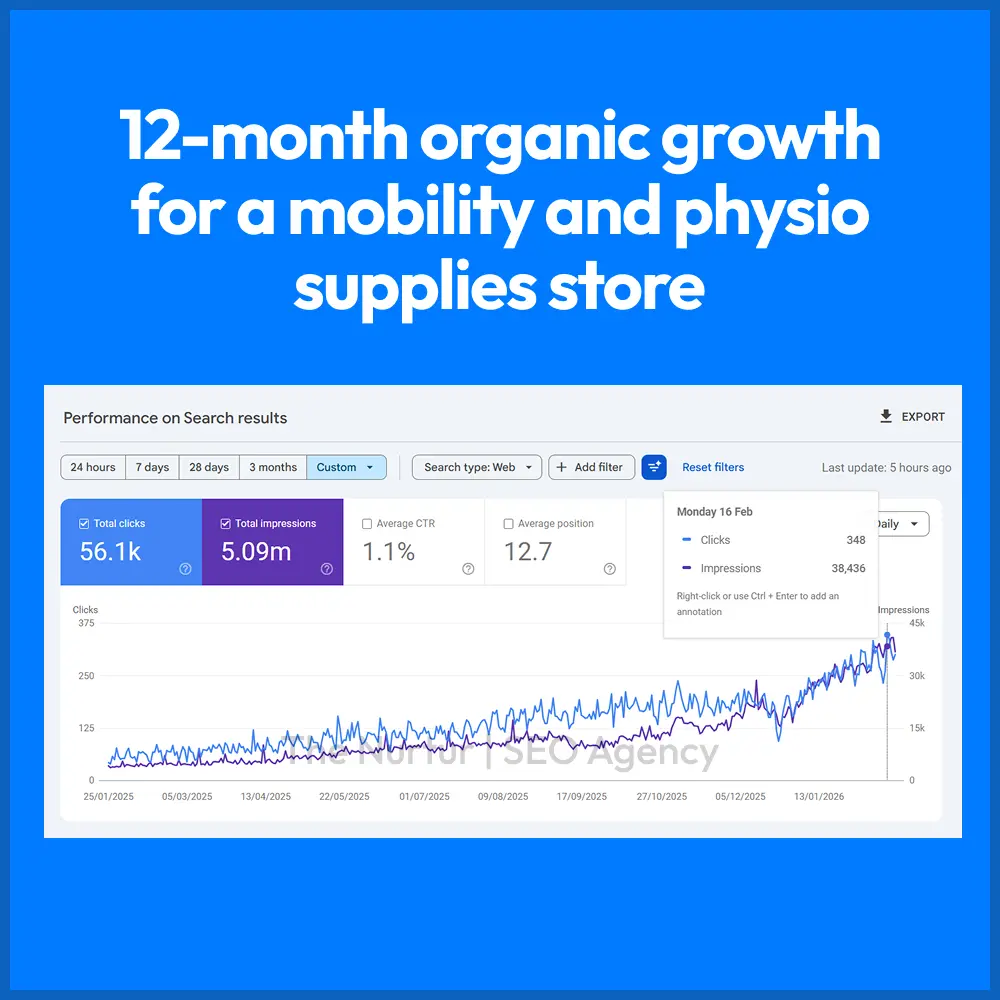 We built and executed a data-driven SEO strategy aligned with the Mobility and Physio Ecommerce, and in 12 months, organic traffic grew by over 797%.