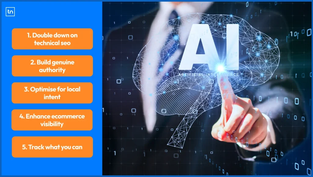 That means investing in high-quality content, strong technical foundations, and ongoing optimisation – the same work that drives organic visibility and also happens to make your brand more likely to be cited by AI.